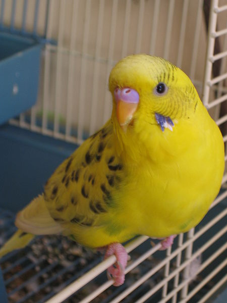 Another dominant variety is Spangles. In the green series, they have a bright green color, but the wing marks differ from the normal ones because the normal black and yellow marks are reversed in Spangle, they are yellow and black instead. The other specific feature of Spangle is that when two Spangles are combined, some youngsters are left without the normal Spangle marks. In the Greens case, all are yellow, including the wings, while the Blue series is white. The correct definition of this bird is a double factor. - Yellow faces