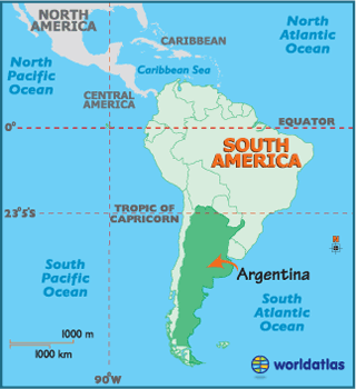 Argentina. Map of South America.