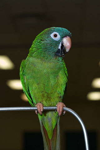 Popular after the movie 'Paulie', Blue-crowned conures are also famous as Sharp-tailed conures. This colorful parrot with intelligent eyes is native to South America inhabiting regions ranging from the north (Columbia) to the south (Argentina). They have a pointy tail. The length of this bird ranges anywhere between 15 to 17 inches.