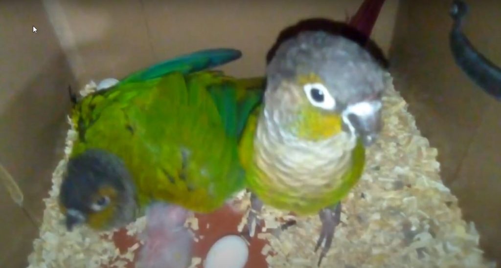 Green Cheek Conure Mother on Eggs